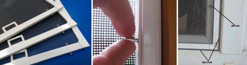 Cette conception est incroyablement simple, il n'est pas difficile de la fabriquer soi-même. Mais les drapeaux se cassent rapidement, surtout ceux en plastique. De plus, il est difficile de restaurer les fixations - les vis commenceront à tomber des rainures lâches. Cette option ne convient qu'à ceux qui enlèvent rarement les moustiquaires de leurs fenêtres.