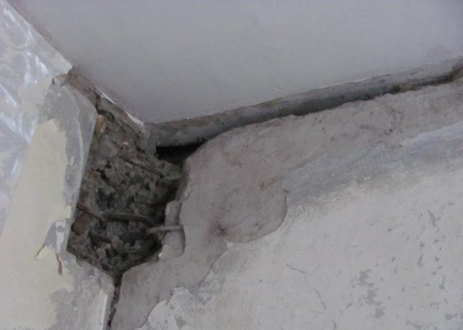 La composition de plâtre s'effrite souvent, se répand et conduit à la formation d'un espace profond à la jonction.