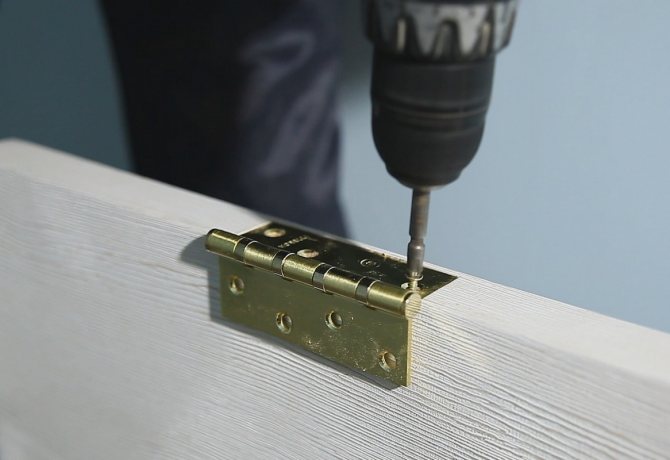 - installez les charnières de porte sur le cadre. Pour fixer les charnières, vous aurez besoin d'outils tels qu'un cutter, un tournevis, un poinçon, une perceuse fine et une perceuse. Parfois, une scie circulaire et un crayon sont utilisés pour fixer les charnières;