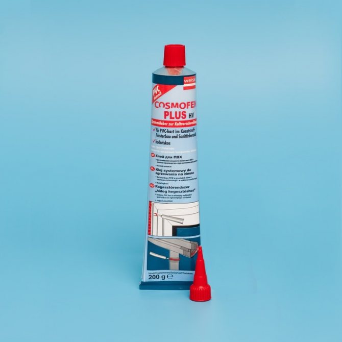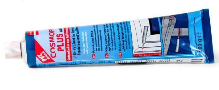 - Colle Cosmofen pour produits PVC. Le produit est similaire en performance aux mastics populaires. Il est utilisé lors du traitement des interstices des blocs de fenêtres. Le mélange durci appliqué ne se décolore pas au soleil, n'exfolie pas, ne change pas de couleur pendant le fonctionnement. Convient pour réparer les raccords, les pièces en plastique, les appareils de plomberie, les raccords, les tuyaux, etc.
