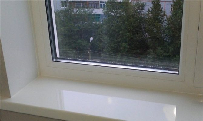 - Après solidification de la substance liquide, une pièce monolithique est formée à la surface, dans laquelle la fenêtre et la pente sont combinées en un seul ensemble.