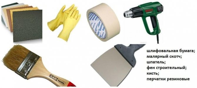 Avant de commencer à réparer les fissures et les bosses, retirez l'ancien revêtement de la surface de travail. Cela peut être fait avec du papier de verre, une solution spéciale ou un pistolet à air chaud.