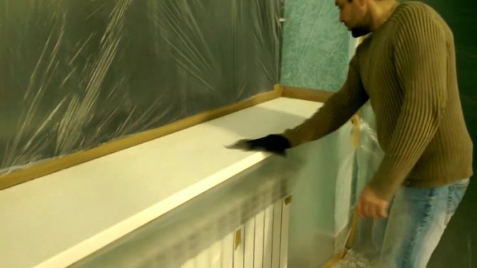 - Protégez le cadre de la fenêtre, la batterie, le sol avec du ruban adhésif et un film (papier journal).