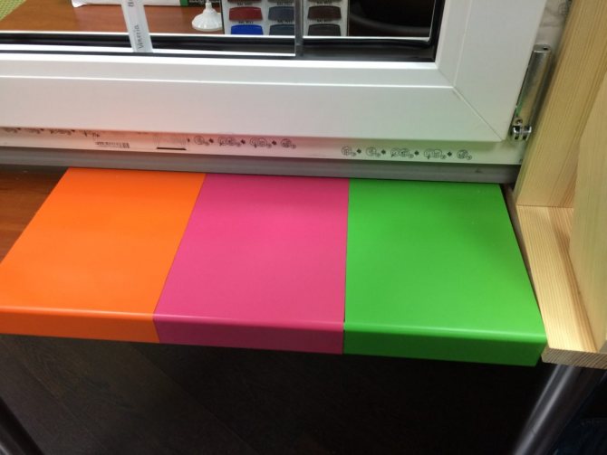 L'aspect acrylique est utilisé pour une variété de matériaux. Leur coût n'est pas élevé, même si certains produits de qualité peuvent coûter plus cher. La palette de couleurs des peintures est large, mais les nuances des compositions dans les boîtes peuvent varier, cette propriété doit être prise en compte avant de peindre le rebord de la fenêtre.