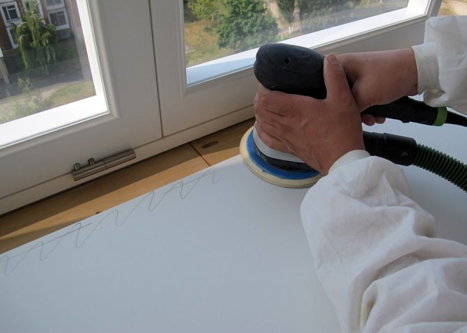 Pour donner une surface plane, le ponçage du rebord de la fenêtre est utilisé.
