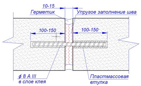 Pour ce faire, après l'installation du coffrage à proximité de l'ancienne fondation, tout matériau élastique est posé - de la laine minérale dure ou du polystyrène expansé d'une épaisseur de 1 à 2 cm et du béton est coulé. Une fois la nouvelle fondation solidifiée, le joint est rempli d'un mastic élastique.