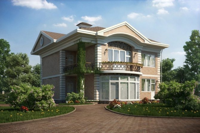 Comme indiqué ci-dessus, il y aura un arc tronqué au-dessus de l'allée entre les colonnes. Les fenêtres et les portes d'entrée de la maison ont également des arcades, ce qui correspond à une solution stylistique unique. Le rayon de toutes les arches doit être le même, la seule différence est la hauteur - cela créera un motif de façade unique.