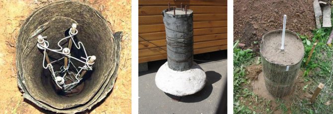 - Les supports en béton ou en brique nécessitent une fondation colonnaire à part entière. Pour empêcher le lourd balcon de "pénétrer" dans le sol, la partie inférieure de la fondation est élargie de 10 cm par rapport à la partie supérieure, pour laquelle le coffrage est installé sous la forme d'un cône tronqué.