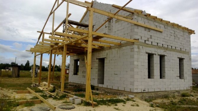 Si vous utilisez des pentes - des supports en bois avec une poutre transversale supplémentaire fixée sur eux, la fiabilité de la structure augmente. L'arbre lui-même est assez plastique, il n'y a donc pas lieu de s'inquiéter du rétrécissement et de la déformation différents des murs.