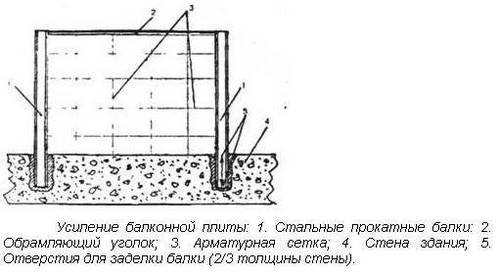 Dans les maisons à panneaux, les dalles de balcon sont basées sur des structures en béton armé utilisant des plafonds. Le renforcement de la dalle de balcon dans les bâtiments à ossature est réalisé à l'aide de la technologie des poutres. Dans ce cas, il n'y a pas de charge sur le mur du bâtiment, car la dalle du balcon repose sur les supports colonnaires.