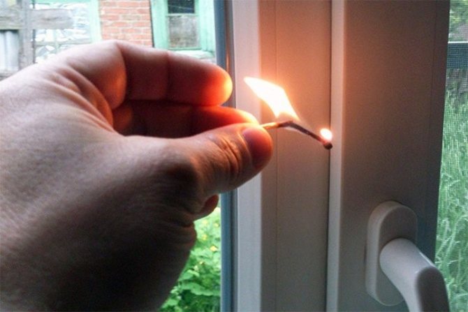 La troisième façon de vérifier l'étanchéité de la fenêtre REHAU (rehau): avec une flamme de bougie. Exécutez le REHAU légèrement autour du périmètre de la fenêtre avec une bougie allumée. Là où la flamme va vibrer, c'est à partir de là qu'elle souffle par la fenêtre REHAU (rehau).