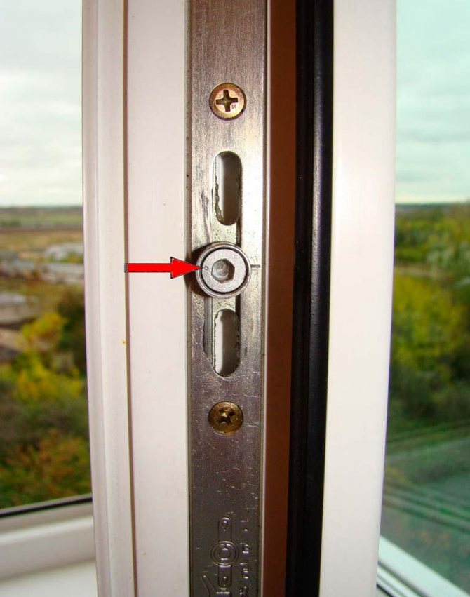 Des goupilles ou des excentriques font partie du mécanisme de verrouillage du matériel. Ils sont situés du côté de la poignée de l'ouvrant. Ils sont faciles à repérer lorsque vous ouvrez la fenêtre. En modifiant la position des excentriques, vous pouvez régler la force de serrage. Les châssis de fenêtre de taille standard sont équipés de 3 broches: bas, centre et haut. Il peut y en avoir plus en fonction de la taille de l'ouvrant.