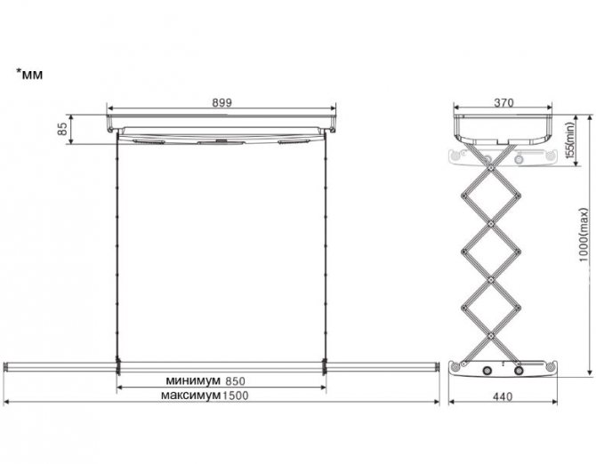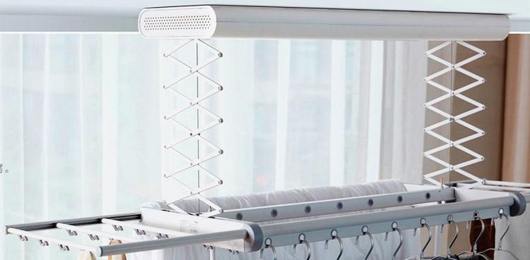 Mais les modèles électriques ont également un énorme avantage. Les conceptions modernes sont équipées de mécanismes d'alimentation en air chaud. Le capteur d'air est installé au plafond et les barres transversales sont à la hauteur optimale. Si nécessaire, vous pouvez régler la hauteur des barres pour sécher le linge plus rapidement. Vous pouvez également augmenter la distance entre les barres.