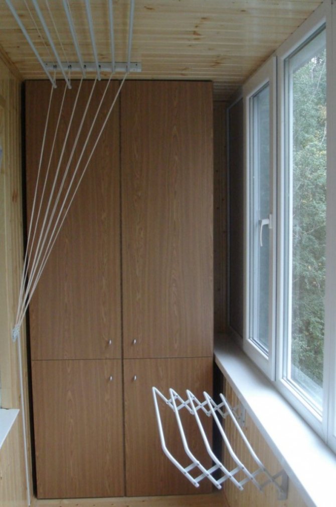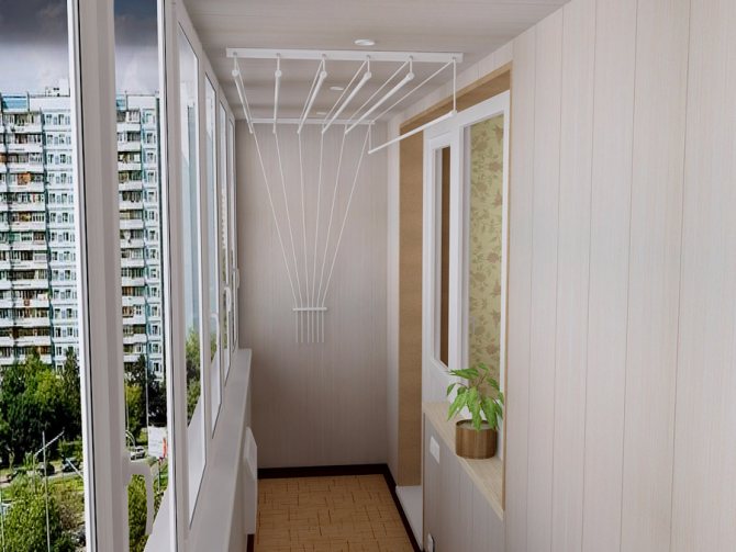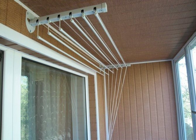 Liana est pratique à tous points de vue. En tant que structure autonome, elle ne prend pas de place. Même avec le linge suspendu, cela n'empêche pas les propriétaires de se déplacer librement sur le balcon. Liana sèche plus vite. L'esthétique de la façade de la maison ne se détériore pas. De l'intérieur de l'appartement, les vêtements accrochés ne sont pas non plus particulièrement frappants.