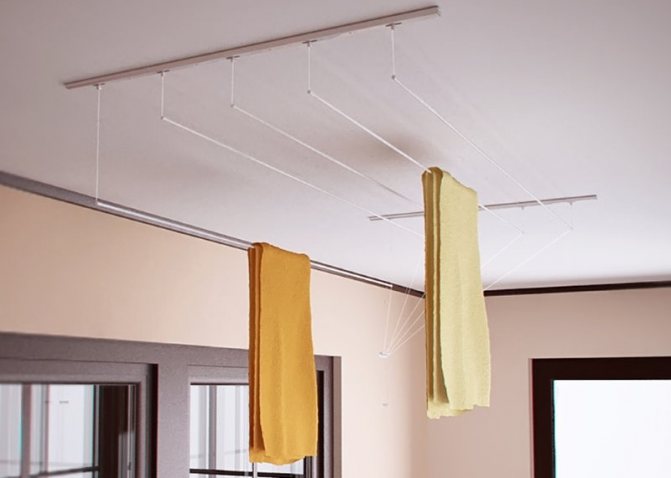 - Si des clous sont utilisés pour fixer les pièces du plafond, ils peuvent ne pas supporter le poids du linge humide et la structure s'effondrera après le premier lavage;