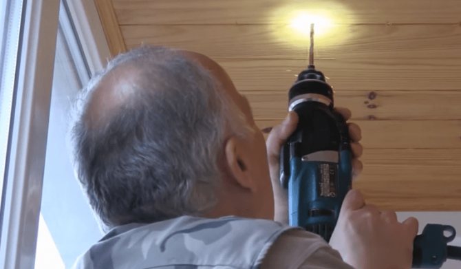 - L'un des supports est fixé au plafond et les trous sont marqués sur la plaque avec un marqueur. La même chose est faite avec le deuxième support. Assurez-vous qu'ils sont sur des lignes parallèles;