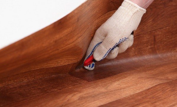 Une fois la toile posée et redressée, la couche supérieure est retirée du ruban et le substrat est collé au sol. Après le substrat, il reste à poser le linoléum, à le couper à l'emplacement et à le coller au sol avec le substrat à l'aide de mastic.