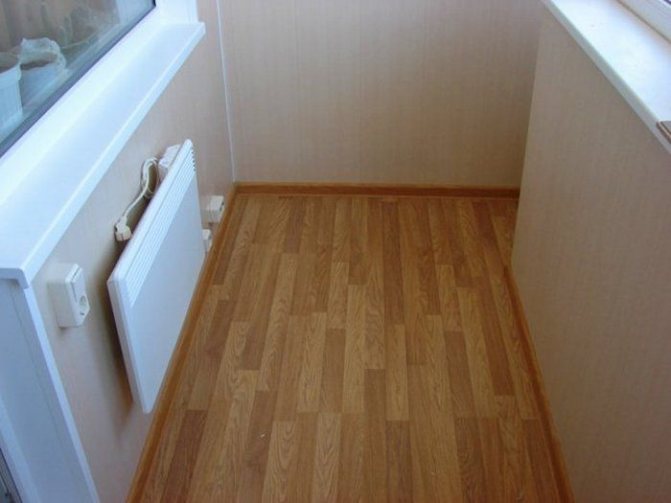 Donc, si vous ne prévoyez pas de passer beaucoup de temps sur le balcon, et de tous les meubles, il n'y aura qu'une table et quelques chaises, vous pouvez mettre du linoléum sur le sol. Dans tous les autres cas, les experts recommandent d'opter pour un stratifié.