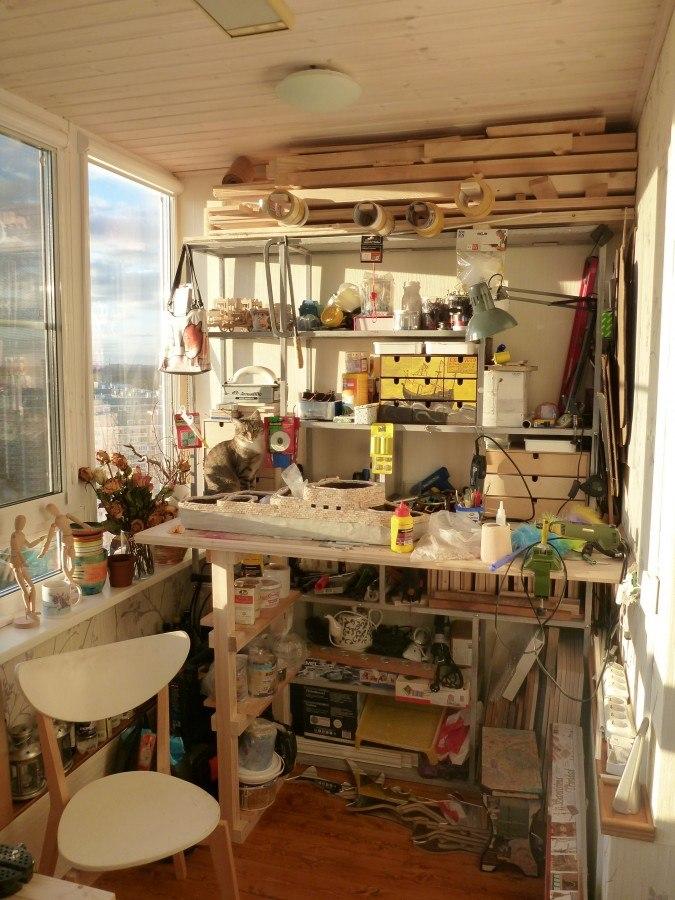 Certaines des nuances de l'organisation d'un atelier sur le balcon d'un appartement en ville: