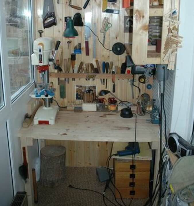 Pour commencer le travail, vous devez créer un plan pour le futur atelier. Pour ce faire, prenez la peine de libérer votre balcon des objets et meubles inutiles. Cela ne prend pas beaucoup de temps. Si vous êtes désolé de vous séparer de vieux meubles et objets, déplacez-les sur votre terrain personnel, votre chalet, votre garage ou donnez-les simplement à de bonnes mains. Ne vous précipitez pas pour jeter votre ancienne armoire et votre ancienne table. Leurs pièces peuvent également être utilisées dans cette construction.