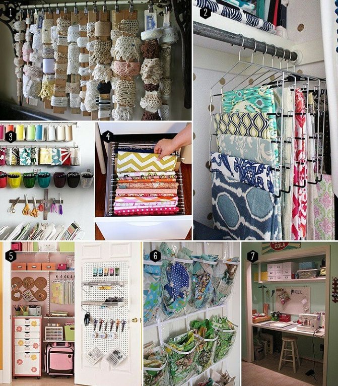 - Les systèmes de rangement pour les outils et les matériaux prévoient l'utilisation d'étagères ouvertes et d'armoires à portes coulissantes. Dans ce cas, les portes battantes habituelles prendront trop de place.