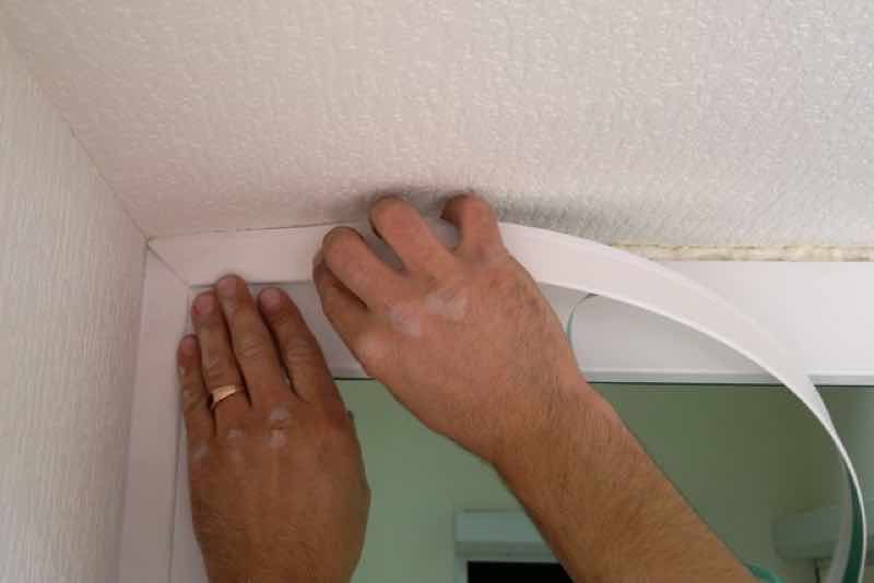Si des bandes de polymère élastiques et flexibles sont achetées, la couche protectrice est retirée progressivement. Il est recommandé de coller les bandes lentement, en collant la surface libérée. Les joints sont repassés à la main et pressés fermement contre le bloc de fenêtre.