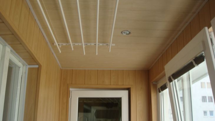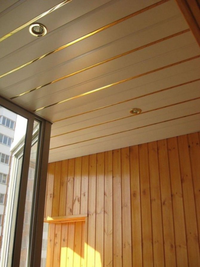 C'est la façon la plus simple et la plus courante de décorer un plafond de balcon. Le plastique est idéal pour aménager cette zone (en savoir plus sur les panneaux de PVC sur le plafond du balcon).