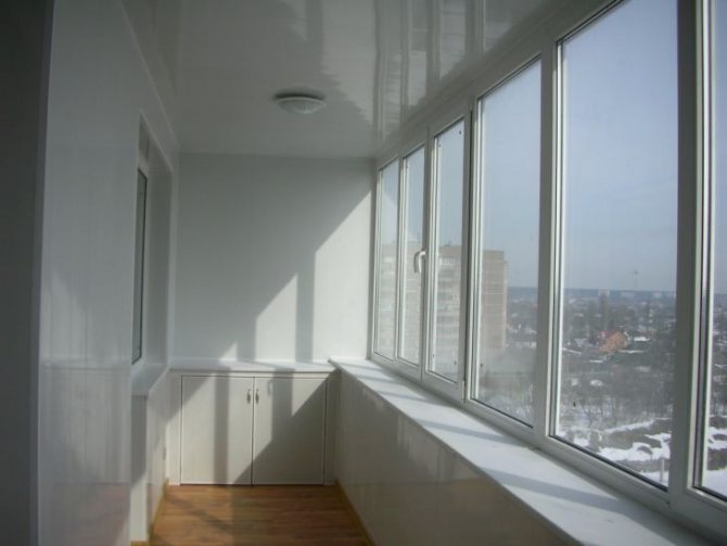 Réduire la hauteur de la pièce. Le cadre de la structure prend au moins 10 cm, naturellement, le balcon devient plus bas qu'il ne l'était à l'origine. Par conséquent, il n'est pas recommandé d'installer un plafond tendu sur de petites loggias avec des murs bas. Par exemple, sur une loggia de 6 mètres carrés, le plafond tendu aura l'air bien, mais dans une pièce de 2 mètres, une telle structure est peu susceptible d'être appropriée.