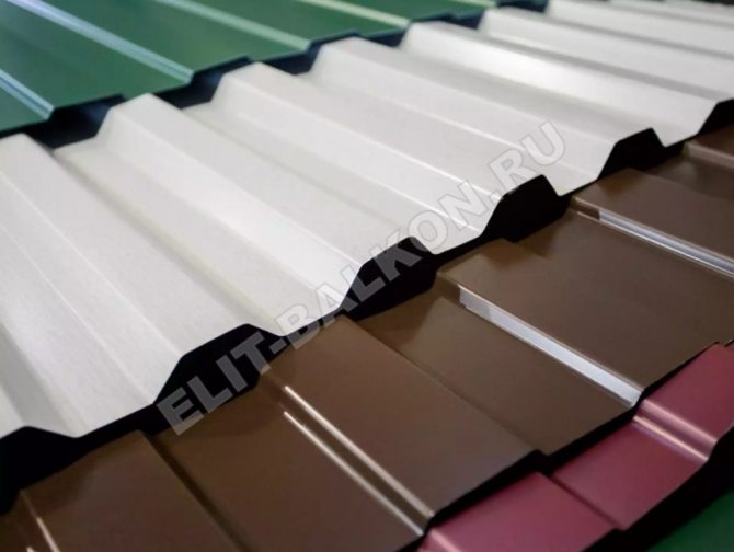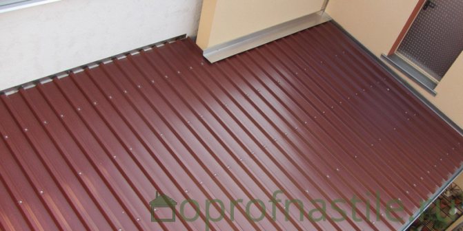 Une tôle profilée est une tôle métallique, qui est d'abord recouverte d'une couche de zinc à chaud pour protéger contre la corrosion, puis d'une couche de polymère coloré (pour cela, par exemple, du polyester ou du plastisol sont utilisés). Le revêtement en carton ondulé présente de nombreux avantages, mais le faible poids du matériau est particulièrement important, ce qui est essentiel pour une structure telle qu'un balcon.