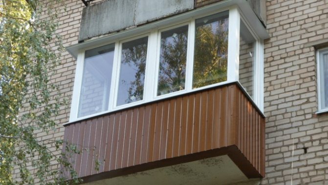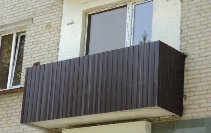Il y a aussi tôle profilée, matériau avec nervures de raidissement inférieures et capacité portante moins élevée... Le revêtement de balcon avec une feuille profilée est réalisé le long d'une caisse continue - de sorte que la résistance finale de la structure augmente. La feuille professionnelle convient également pour le gainage d'une loggia avec une clôture en brique.