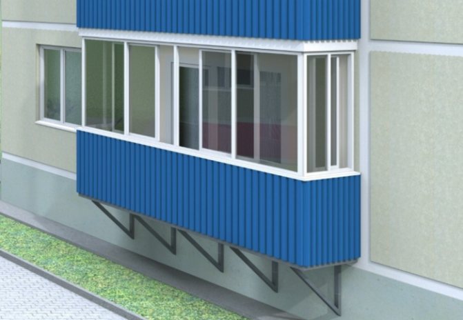 - Aux derniers étages, avec le revêtement, il est possible d'installer un toit au-dessus du balcon. Pour le toit, le même matériau est utilisé, dans lequel les raidisseurs sont présents en plus grande quantité que pour la finition des balustrades de balcon;