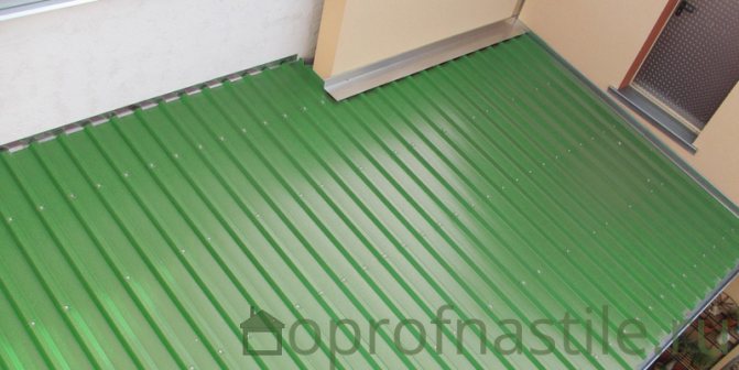- Carton ondulé pour le balcon démontre également un excellent service durable. Le matériau est léger, facile à installer et se fixe rapidement sans accessoires supplémentaires. Sous le carton ondulé, ainsi que sous les matériaux décrits ci-dessus, une isolation peut être montée, assurant la protection de l'espace intérieur contre le vent et l'humidité.