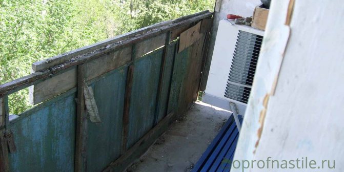 La finition des balcons avec des profilés métalliques implique des travaux préparatoires. Il est important de prendre en compte que le côté extérieur de la loggia, dans la plupart des cas, est recouvert de dalles d'amiante. Au fil du temps, une telle surface devient très fragile et lâche, par conséquent, le retrait de ces plaques doit être effectué avec une extrême prudence.