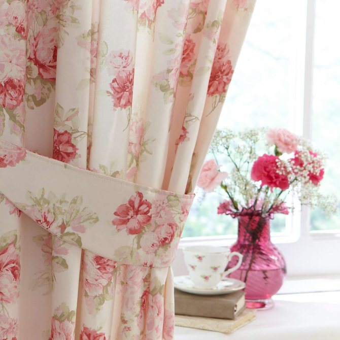 - Le thème de la nature sera complété par des rideaux à imprimé floral. Dans le même temps, les textiles doivent être légers et aérés, de préférence fabriqués à partir de matériaux naturels.