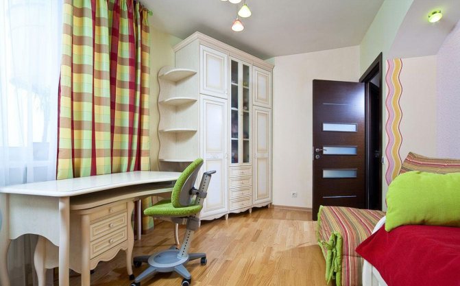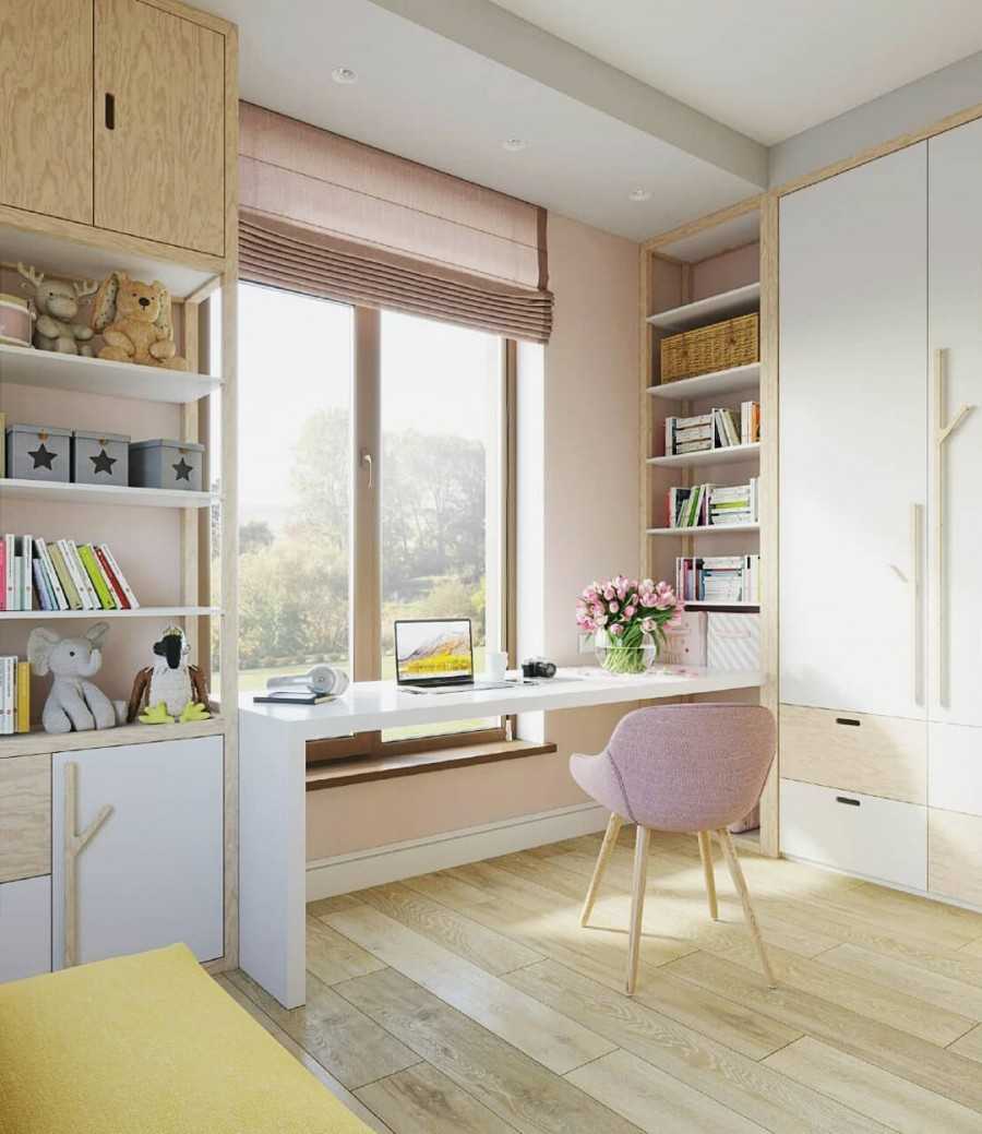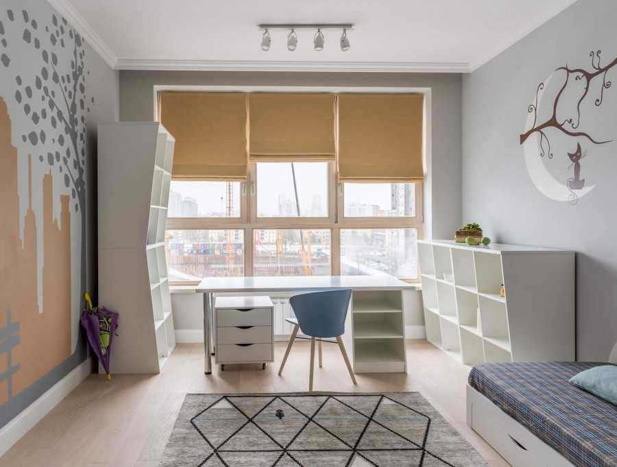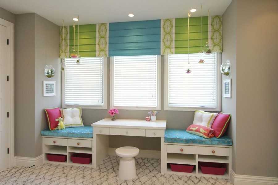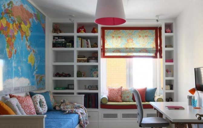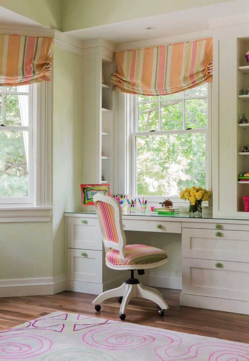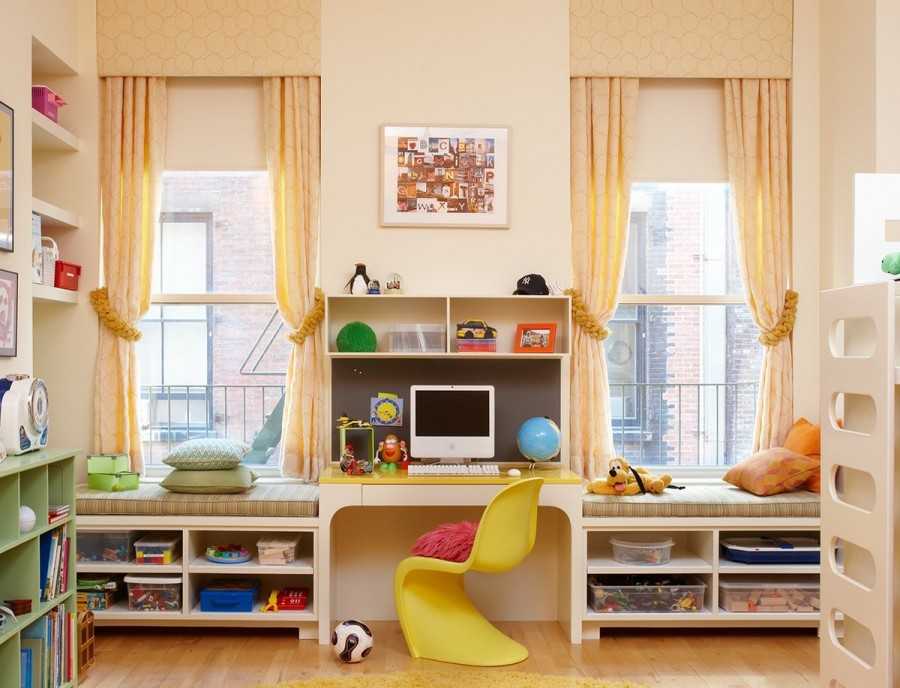 La zone de travail près de la fenêtre dans la chambre des enfants doit être située conformément aux règles d'éclairage. Cela nécessitera un réaménagement sérieux des meubles.