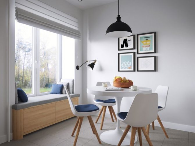 - Les matériaux sont légers, sans poids. Surfaces d'armoire brillantes ou mates. Le rebord de la fenêtre peut être complètement absent ou devenir un espace de détente pour les parents.