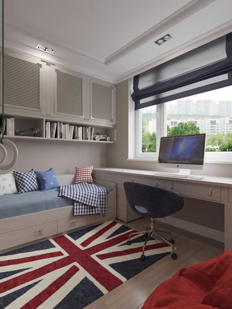 Pour les adolescents, les éléments high-tech, l'éclairage, les éléments chromés, les dernières technologies sont utilisées. Le noir ne doit pas prévaloir, mais il peut être utilisé dans certains éléments (sur les étagères, les coussins du canapé, etc.), notamment pour les garçons. Les filles sont plus adaptées aux tons beige, pêche et marron. Les rideaux foncés et le tulle clair et translucide sont acceptables.