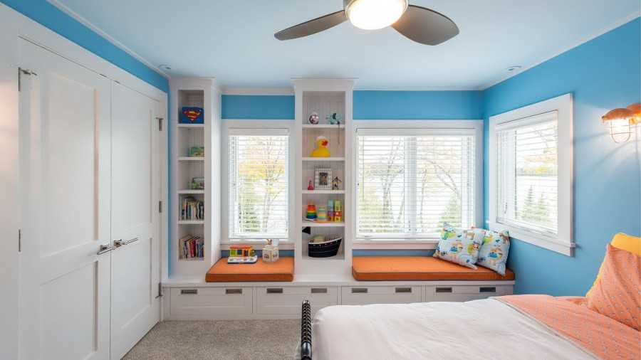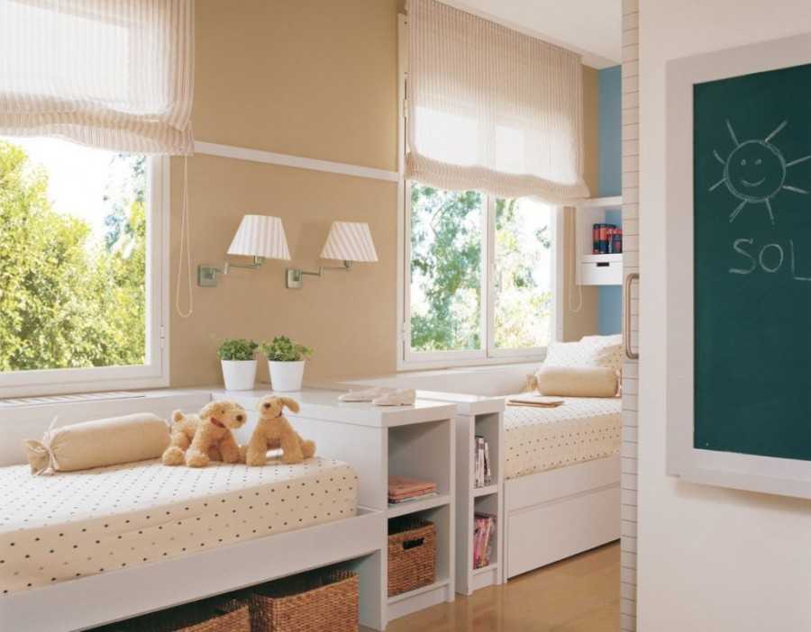 À une fenêtre, il est judicieux d'équiper une aire de jeux ou de mettre un bureau, et de l'autre, de faire un couchage ou un espace de jeu supplémentaire.
