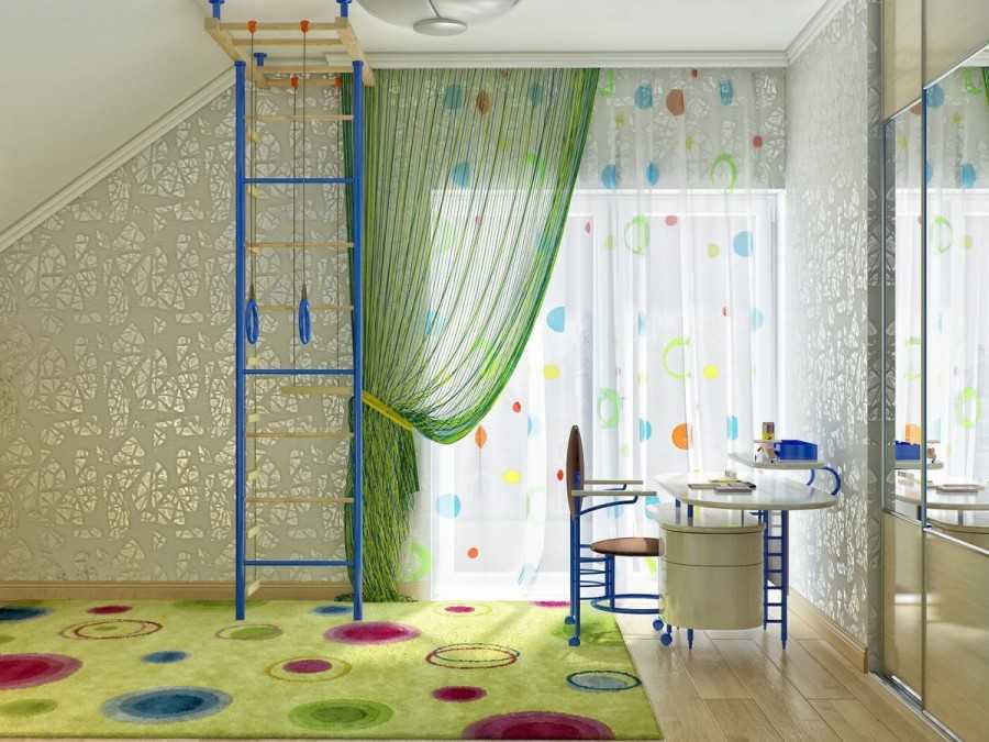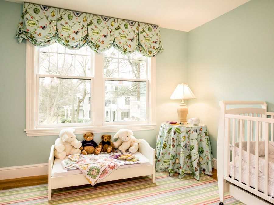 Il faut se rappeler que la crèche est un lieu d'étude et de jeu. Une partie de l'intérieur doit être conservée dans un style strict, sans distractions. L'aire de jeu peut contenir des dessins, des impressions avec des personnages de dessins animés ou des rideaux avec des images. Si la zone d'acquisition des connaissances est située près de la fenêtre, tout doit être aussi laconique que possible pour que l'œil ne s'accroche à rien et que l'enfant ne soit pas distrait des cours.