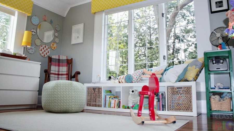 Peu importe l'âge de l'enfant, il obtient ses impressions et ses forces dans la pièce à travers la fenêtre. Par conséquent, la disposition des meubles est calculée par rapport à celui-ci.