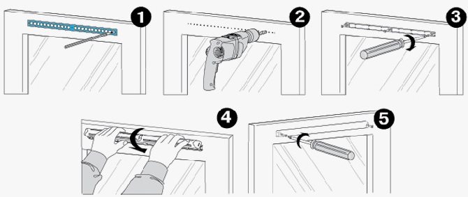 Il n'y a qu'une seule méthode d'installation - sur les trous fraisés. Le joint n'est pas fourni dans le kit - car vous n'avez pas à le couper de la fenêtre pour l'installation.