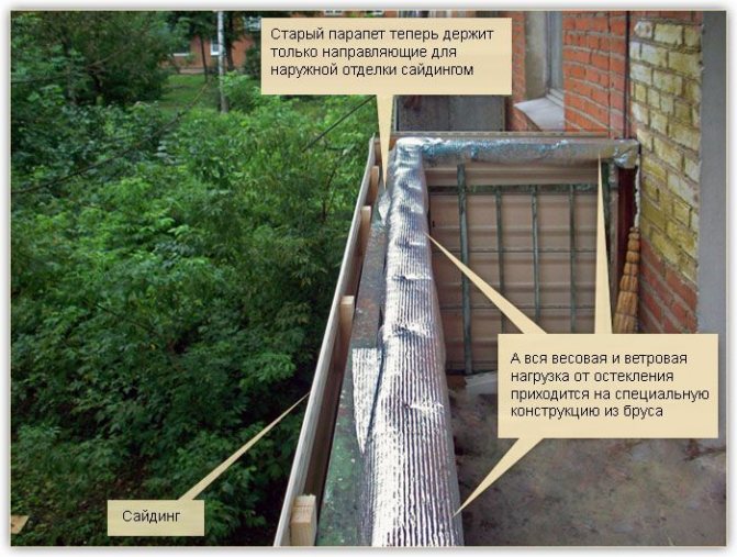 Dans le cas présenté, vous pouvez corriger ce problème, simuler le parapet à l'état souhaité ou remplir complètement un nouveau parapet. Une autre option consiste à installer non pas une structure en plastique, mais une en aluminium, qui est beaucoup plus légère.