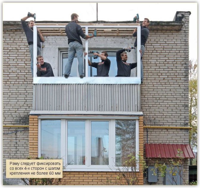 - Enlève le vitrage du profilé, puis nous faisons l'installation dans l'ouverture du balcon à l'aide d'ancrages.