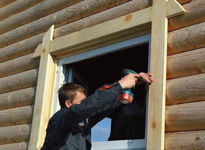 L'utilisation de bandes est particulièrement efficace lors de la décoration des fenêtres des maisons en bois. La nuance de ce travail réside dans le fait que la finition extérieure de la fenêtre en plastique ne doit être commencée qu'une fois la finition extérieure terminée.
