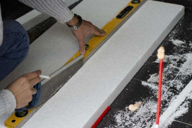 La finition des pentes avec du polystyrène expansé vous permet de niveler et d'isoler simultanément les ouvertures. Pour cela, des plaques d'une épaisseur de 15 à 20 mm sont utilisées. Lorsque vous travaillez avec ce matériau, il est nécessaire que la surface soit aussi uniforme que possible; Le polystyrène expansé ne diffère pas en plasticité, mais au contraire, a une rigidité et une fragilité accrues. Par conséquent, sur des renflements importants, il peut se fissurer ou même se casser. L'avantage de cette méthode de finition est que vous n'avez pas besoin d'avoir une connaissance approfondie de la construction pour la terminer, et vous pouvez faire l'installation vous-même. Pour effectuer les travaux, vous aurez besoin de:
