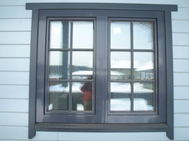 Pour la décoration d'une maison dont les murs sont gainés de bardage en vinyle, des joints standards de ferrures autour de l'ouverture de fenêtre ont été développés.