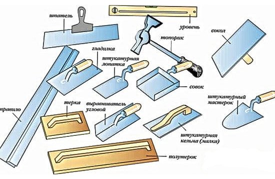 L'application du plâtre dépend des compétences professionnelles du finisseur: certains utilisent une truelle, appliquent du mortier sur le faucon et le jettent sur les pentes, d'autres utilisent différents types de truelle à cet effet.