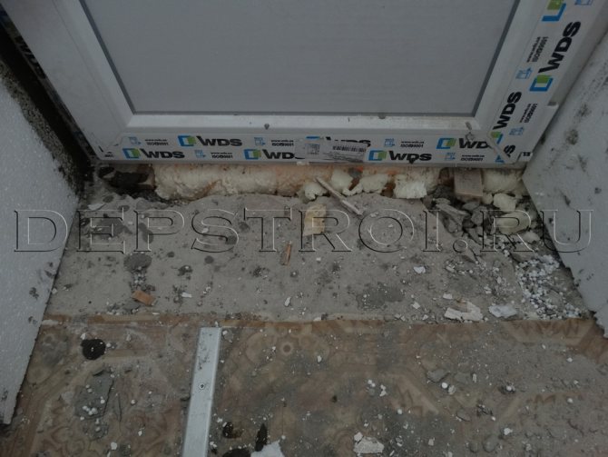 Important! Lors de l'installation de la pente inférieure, il doit y avoir un espace d'au moins 20 mm entre le bord supérieur de la mousse et le bas du cadre de la fenêtre. Ceci est nécessaire pour installer une marée descendante.