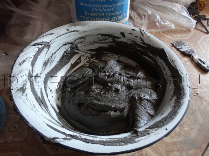 Pour le parement extérieur de la fenêtre, il convient d'utiliser des colles pour travaux extérieurs. Ils sont scellés avec de l'eau et soigneusement mélangés à l'aide d'une perceuse avec un accessoire de mélangeur. Un grand volume de solution ne doit pas être préparé immédiatement. Il faut prendre en compte le temps de prise et la quantité de travail.