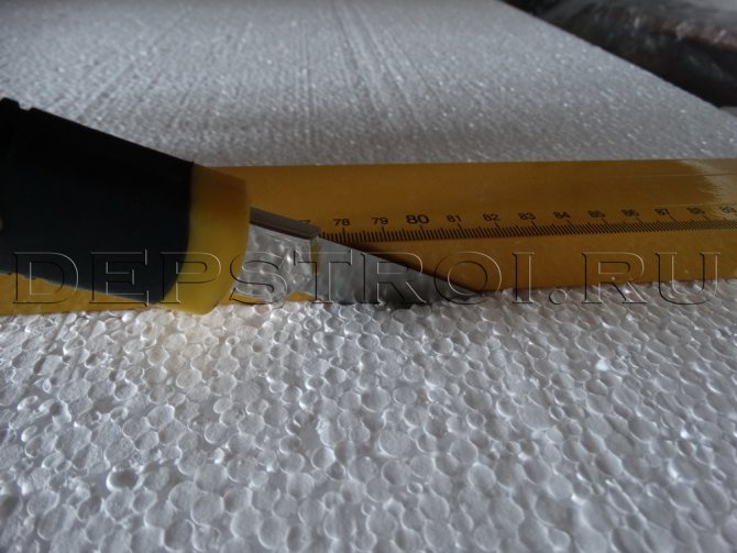 - Dans le cas de la mousse de polystyrène, la surface doit être grattée avec une feuille d'émeri pour réduire le lissé. Après cela, le matériau peut être collé en toute sécurité sur les pentes. Lorsque vous découpez les morceaux de mousse que vous souhaitez, mesurez des tailles légèrement plus grandes, qui peuvent toujours être coupées au lieu de coller les morceaux manquants.